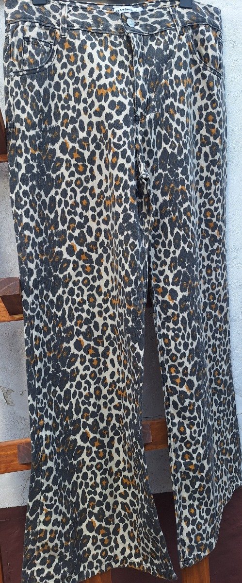 Pantalon de gabardina leopardo ancho